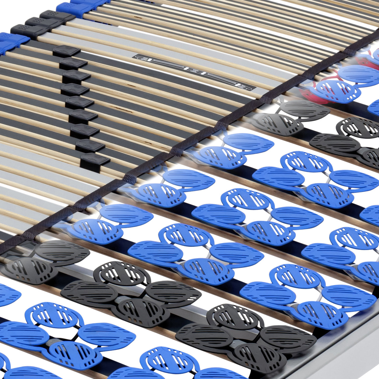 Maximale Punktelastizität statt starrer Leisten. Unsere Tellerlattenroste passen sich jeder Bewegung dreidimensional an und entlasten Schultern sowie Hüfte punktgenau.